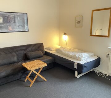 Der er 3 store dobbelt værelser på ca. 16 m2. Værelserne er møbleret med 2 enkeltsenge samt 1 sovesofa. Værelserne har 2 fælles bad/toilet, køkken og adgang til lækre fælles opholdsrum.